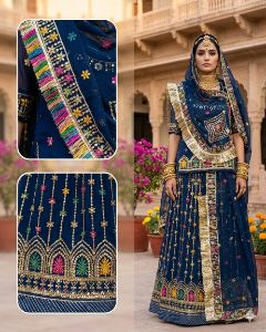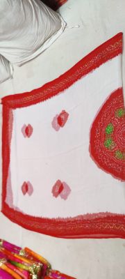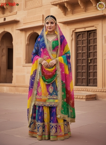 Half-Pure Poshak New Pachrangi bandhej Multicolor Diamond stone kerry more design four side heavy border in odhana Kundan