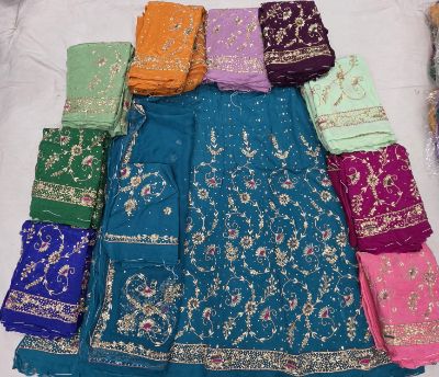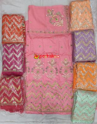 Crape-Pyor Suit half flower chakri four side border gota kiran Kundan