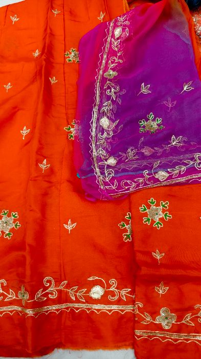 Half-Pure Poshak Cut dana pipe four side border lehariya with astar aari magji Banarasi